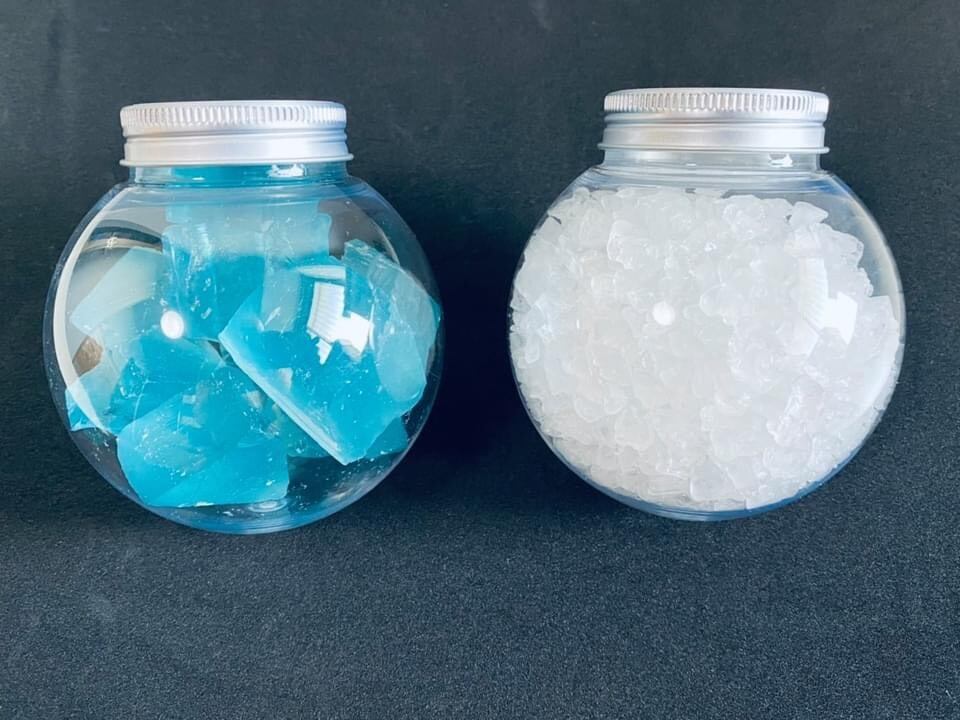 A. まず、ブルーシリカは元来水に溶けることを前提に造られていますので、空気中の湿気に反応して酸化していきます。酸化すると粉を吹いたように白くなります。最終的には真っ白になります。